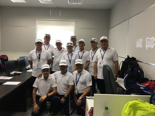 지난해 2016년 7월 러시아에서 개최된 세계군인 고공강하개회때 심판진들과 함께.